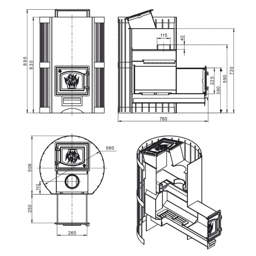 Чугунная дверь при нагревании не деформируется, сохраняет свою форму при остывании и предотвращает попадание продуктов горения на пол перед топкой.