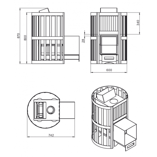 В конструкции данной печи предусмотрен топочный тоннель, при помощи которого печь топится из соседнего помещения, смежного с парильным.