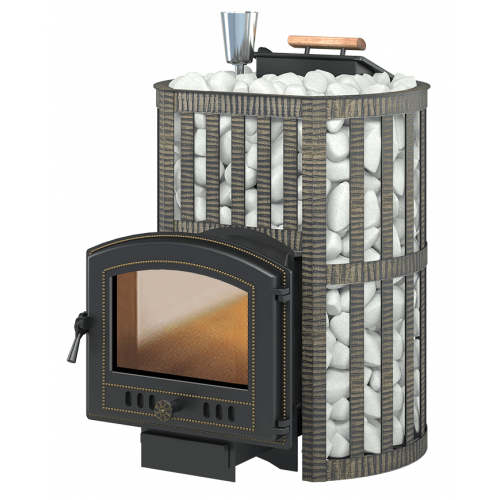 Банная чугунная печь Ураган Ковка 16 (224) укомплектована чугунной герметичной дверцей Везувий 224 с жаропрочным стеклом «SCHOTT ROBAX». Закрытая каменка изготовлена из стали и вмещает в себя не менее 60кг камней.