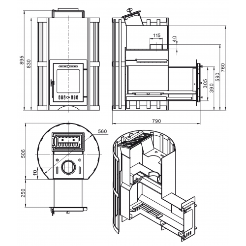 Стальная дверь изготовлена из особо прочной стали толщиной 2 мм, оборудована термостойким стеклом и выдерживает температуру до 650 градусов.