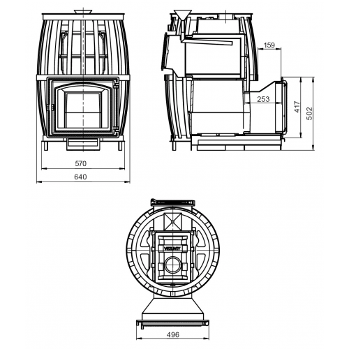Все элементы топки отлиты из жаропрочного чугуна и соединены между собой с помощью болтового соединения через термостойкий шнур и герметик, а закрытая каменка изготовлена из жаростойкой высоколегированной 4 мм нержавеющей стали. Вес камней в закрытой каменке — 25-40 кг.