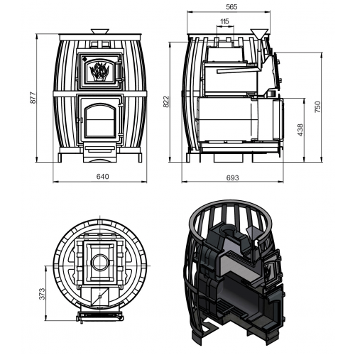 Все элементы топки отлиты из жаропрочного чугуна и соединены между собой с помощью болтового соединения через термостойкий шнур и герметик, а закрытая каменка изготовлена из жаростойкой высоколегированной 4 мм нержавеющей стали.