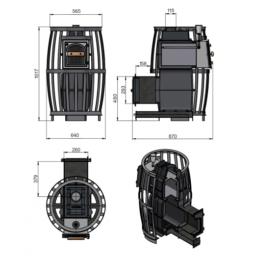 а закрытая каменка изготовлена из жаростойкой высоколегированной 4 мм нержавеющей стали.