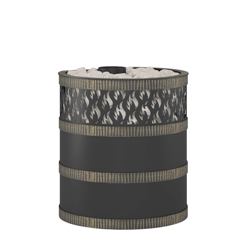 Кожух из стального листа и кованых стальных колец предназначен для обеспечения конвекции устройства открытой каменки и дополнительно защищает парящихся от жёсткого инфракрасного излучения.
