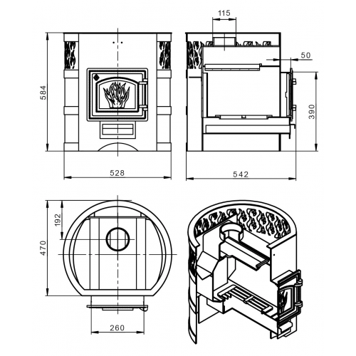 Вместе с тем, данная конструкция стенок предполагает направление дров ближе к колосниковой решётке, что обеспечивает полное прогорание топлива.