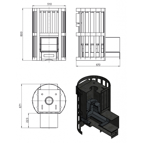 Конвекционно-вентилируемый кожух "Стандарт" изготовлен из металлического прутка диаметром 6мм покрашенной черной термостойкой краской.