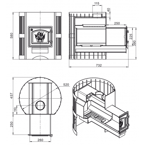 - Диаметр дымохода 115 мм