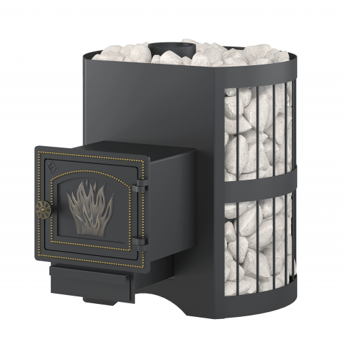 Печь СКИФ оборудована открытой каменкой, закладываемой камнями для бани (приобретаются отдельно).