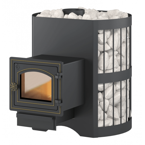 Печь СКИФ оборудована открытой каменкой, закладываемой камнями для бани (приобретаются отдельно).