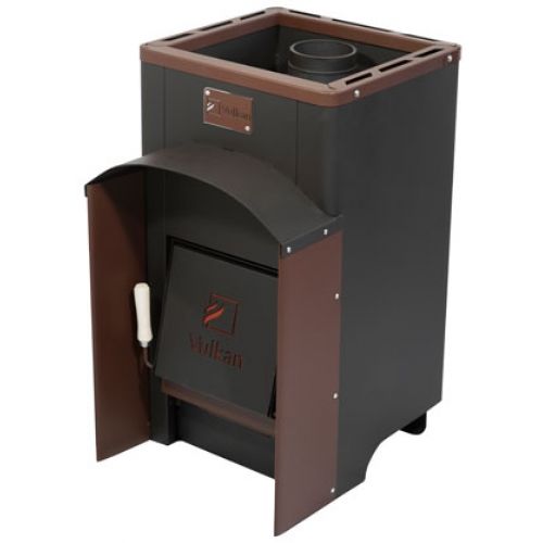 Печь имеет тройную защиту от жесткого инфракрасного излучения, специально разработанный для топок «Вулкан» чугунный колосник, обеспечивает устойчивое горение даже сырых дров. Турбо-топка из качественной конструкционной стали в местах наибольшего нагрева имеет толщину 10мм, оптимизирует процесс горения для максимального выделения тепла и обеспечивает значительную экономию дров. Прочистное отверстие топки позволяет удобно и быстро провести обслуживание печи. Патрубок печной трубы изготовлен из 8мм стали и подходит под два диаметра печных труб 110 и 115мм. Дополнительные ребра обеспечивают высокую жесткость печи, увеличивают поверхность, отдающую тепло камням, увеличивают срок службы топки, эффективно отводя от нее тепло. Конструкция кожуха обеспечивает закладку оптимального объема камней, увеличивая тем самым теплоемкость печи и качественные кондиции пара.