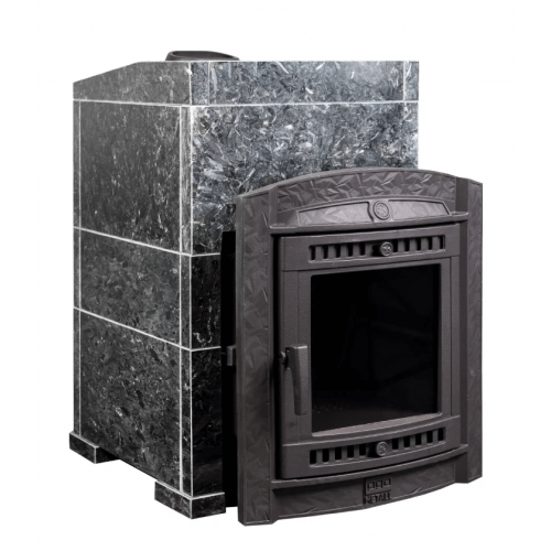 Модель печи в стильной и практичной облицовке из «Амфиболит». За счет использования несущих брусков, состоящих из цельного камня, теплоёмкость печи увеличивается на 50%. Конструкция просто собирается и позволяет легко заменить любую деталь в случае необходимости. Цена и КПД такой облицовки отличаются оптимальным соотношением.