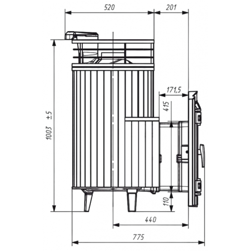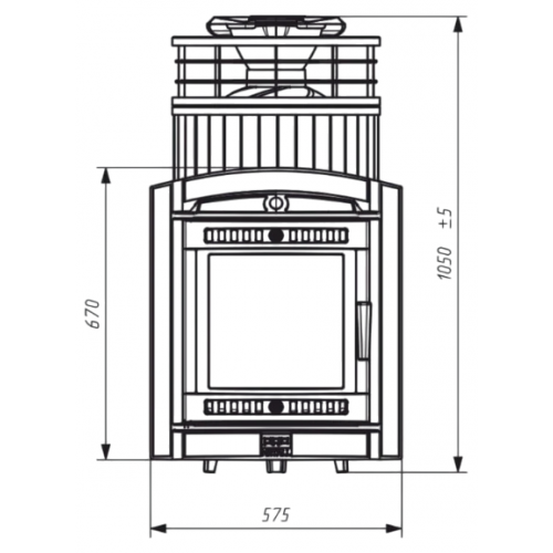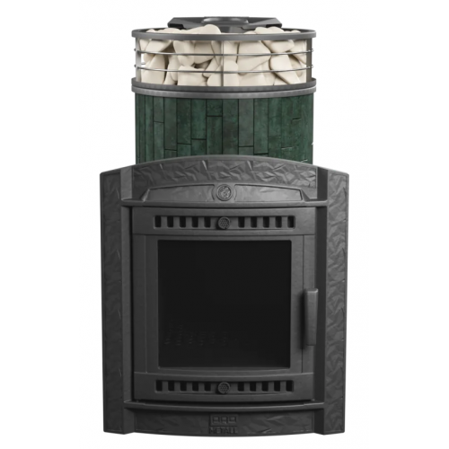 Практичная и компактная модель. Ламели из змеевика по периметру внешней каменки не только обладают хорошими теплонакопительными свойствами, но и придают печи оригинальный внешний вид.