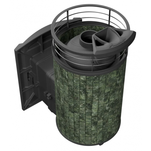 Практичная и компактная модель. Ламели из змеевика по периметру внешней каменки не только обладают хорошими теплонакопительными свойствами, но и придают печи оригинальный внешний вид.