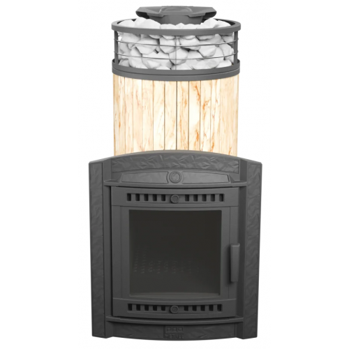 Модель с увеличенной каменкой и повышенной производительностью. Ламели из змеевика по периметру внешней каменки не только обладают хорошими теплонакопительными свойствами, но и придают печи оригинальный внешний вид.
