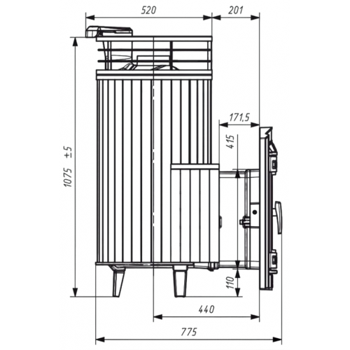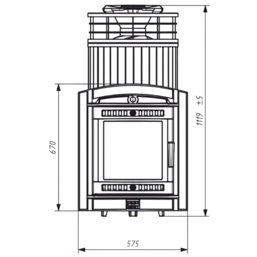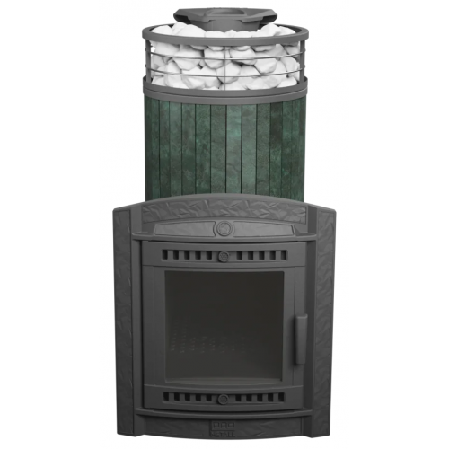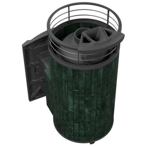 Модель с увеличенной каменкой и повышенной производительностью. Ламели из змеевика по периметру внешней каменки не только обладают хорошими теплонакопительными свойствами, но и придают печи оригинальный внешний вид.