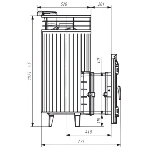 Модель с увеличенной каменкой и повышенной производительностью. Ламели из змеевика по периметру внешней каменки не только обладают хорошими теплонакопительными свойствами, но и придают печи оригинальный внешний вид.
