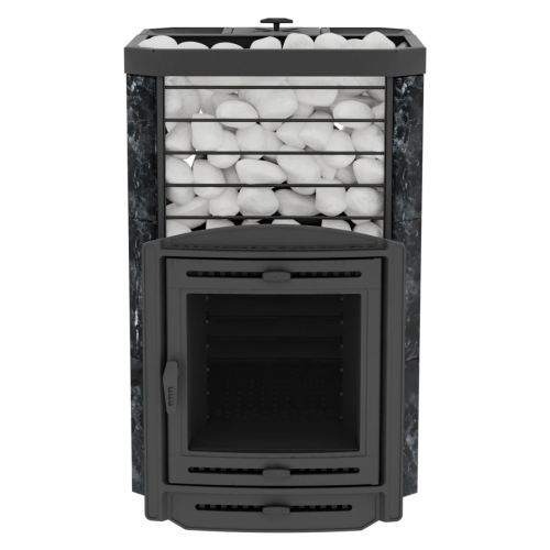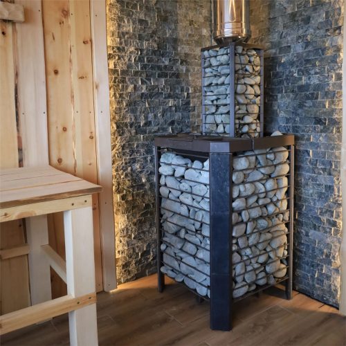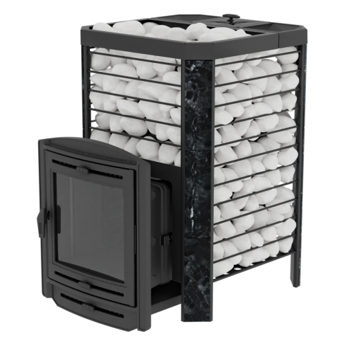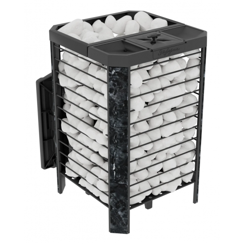 Модель повышенной мощности, обеспечит максимальное количество пара в больших помещениях. Кожух печи изготовлен в виде сетки из нержавеющей стали с прямоугольными ячейками и полностью заполняется природными камнями, обеспечивая высокую динамику нагрева парильного помещения.