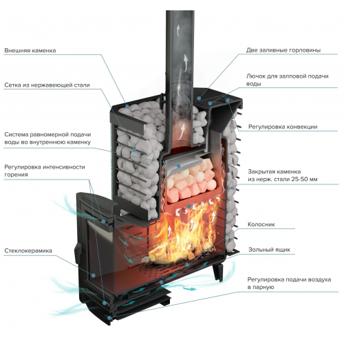 Материал закрытой каменки | нержавеющая сталь (дно каменки 50 мм (20Х13Л)) |