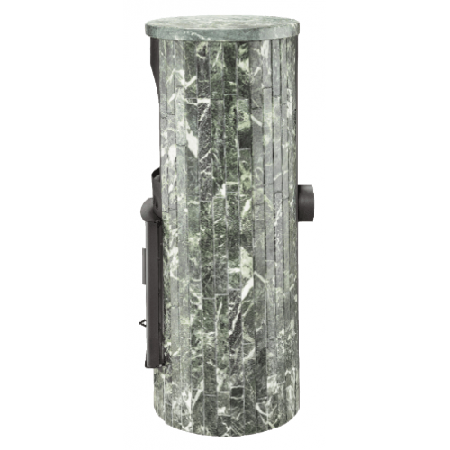Для облицовки топки заказчик может выбрать натуральный змеевик, жадеит, "окаменевшее дерево" и мрамор. Негорючий облицовочный материал повышает безопасность оборудования, камень аккумулирует тепло и продолжает отдавать его воздуху, когда огонь в топке погас. Еще одно достоинство облицовки – уникальный узор. Рисунок на камне никогда не повторяется дважды.