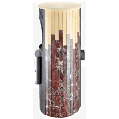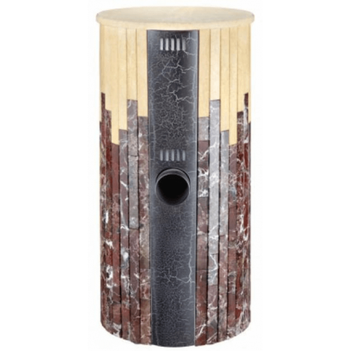 Для облицовки топки заказчик может выбрать натуральный змеевик, жадеит, "окаменевшее дерево" и мрамор. Негорючий облицовочный материал повышает безопасность оборудования, камень аккумулирует тепло и продолжает отдавать его воздуху, когда огонь в топке погас. Еще одно достоинство облицовки – уникальный узор. Рисунок на камне никогда не повторяется дважды.