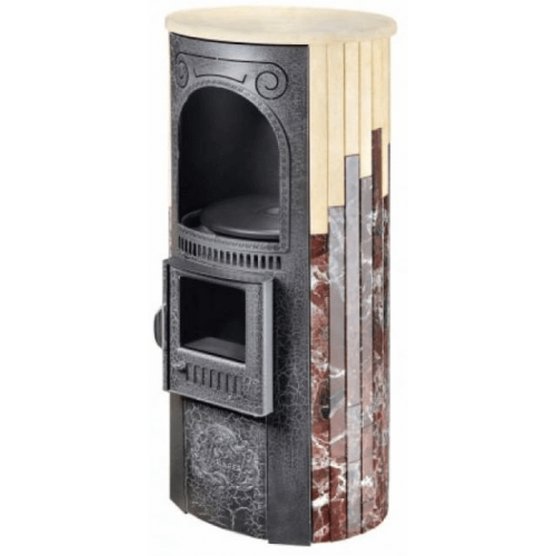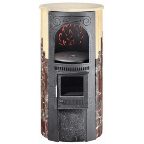 Печь отопительно-варочная Лада в облицовке Россо Леванте + Окаменевшее дерево