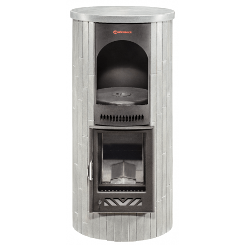 Для облицовки печи на заводе Vöhringer используют натуральный змеевик. Камень в слэбах разрезают на пластины, которые навешивают на отопительные печи для дома по технологии «Ламель». Топка в каменном обрамлении не только отлично выполняет основные функции, но и служит украшением интерьера.