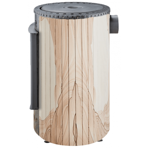 Печь отопительно-варочная Нелжа в облицовке Окаменевшее дерево перенесённый рисунок