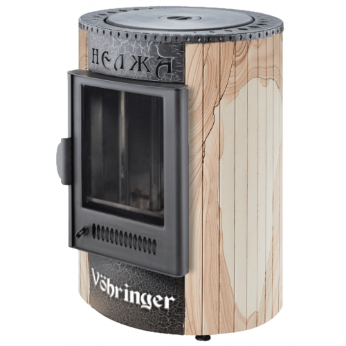 Топка печи «Нелжа» изготовлена из стали марки AISI 439. Преимущества этого сплава – высокая жаростойкость и неподверженность коррозии. Дверца топки имеет широкую вставку из огнеупорного стекла. Горячую зону топки огибает резервуар, в который можно заложить до 50 кг камней. Активное горение дров в печи продолжается несколько часов. В это время каменная масса вбирает в себя тепло, а после погасания камень продолжает равномерно прогревать воздух еще 2-3 часа.