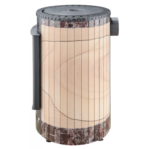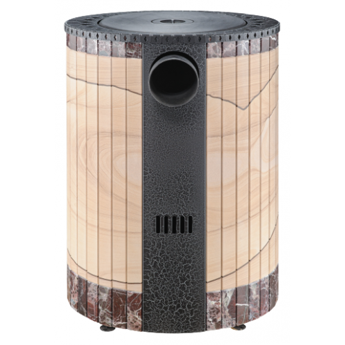 Печь отопительно-варочная Нелжа в облицовке Окаменевшее дерево перенесённый рисунок + Россо Леванте