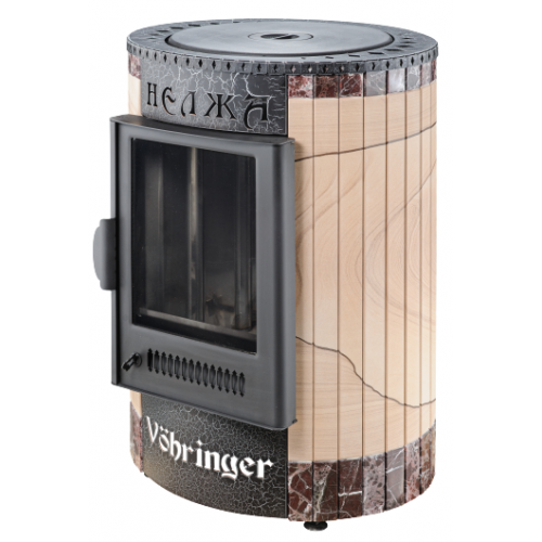 Для облицовки печи на заводе Vöhringer используют натуральный камень. Камень в слэбах разрезают на пластины, которые навешивают на отопительные печи для дома по технологии «Ламель». Топка в каменном обрамлении не только отлично выполняет основные функции, но и служит украшением интерьера.