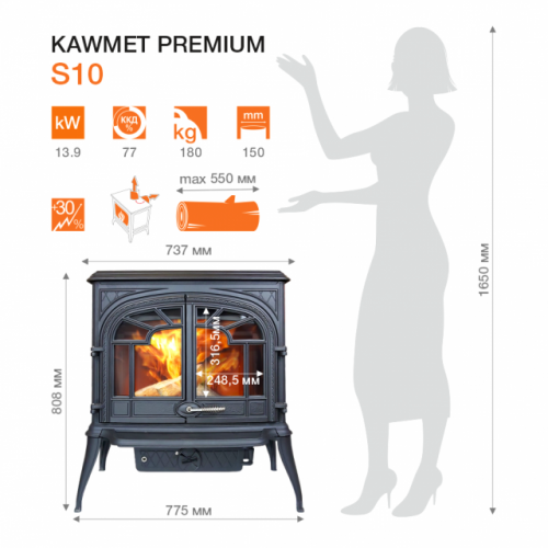 - Модель: Чугунная печь KAWMET Premium S10 (13,9 кВт)