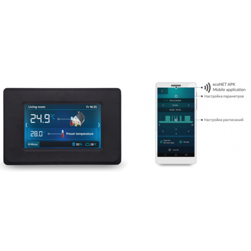 - управление регулятором с помощью мобильных приложений ecoNET.apk и ecoNET.app.