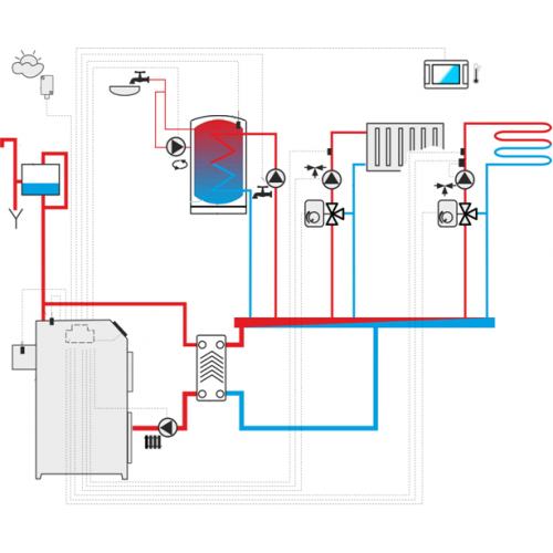 Контролируют процесс сгорания в котлах с пеллетными горелками, а также в котлах на биомассе. Стандартно управляют работой обогревательных контуров и бойлером ГВС, смесительным контуром, а так же дополнительным внешним шнеком, буферной ёмкостью(теплообменником) и насосом рециркуляции ГВС.