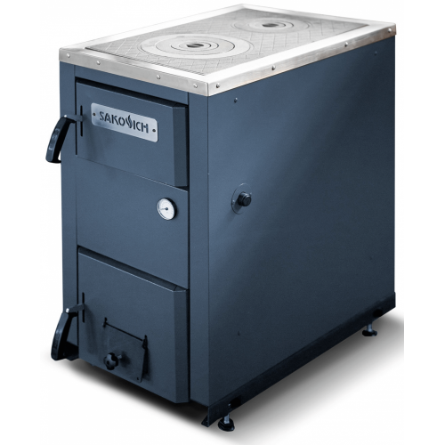 Твердотопливный котёл с кухонной печью MADERA 16 кВт (NEW) - это двухфункциональный котёл, который состоит из котла центрального отопления и чугунной варочной панели с конфорками.