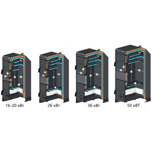 Длительность горения обусловлена большой площадью многоходового теплообменника, водонаполненной колосниковой решёткой, многоточечной регулировкой воздуха для горения и большим объёмом топочной камеры. Периодичность загрузки топлива (длительность горения) зависит от его калорийности, влажности и длительности тления, в среднем 6 часов на дровах и 18 часов на угле.