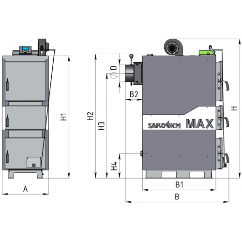Промышленный твердотопливный котёл длительного горения MAX - водяной котёл центрального отопления многоквартирных домов, хозяйственных построек и магазинов, малоэтажных зданий и сооружений сельскохозяйственного, коммунально-бытового, промышленного назначения, а также для теплоснабжения технологических процессов.Длительность горения обусловлена многоходовым теплообменником, регулировкой воздуха для горения и большим объёмом топочной камеры.