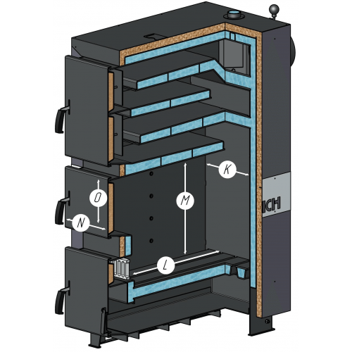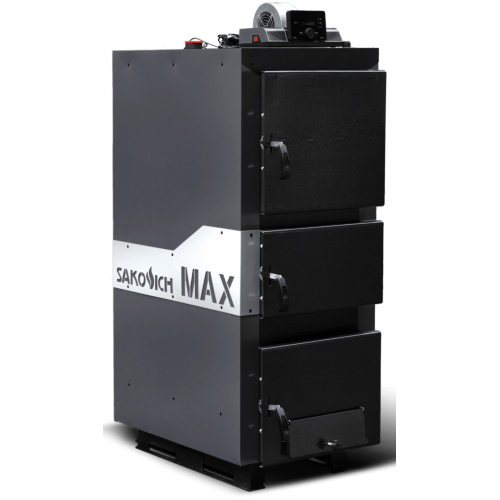 Теплообменник котла SAKOVICH MAX выполнен из котловой стали толщиной 6 мм с пятиходовым горизонтальным преломлением, изолирован минеральной ватой и обшит металлической облицовкой, окрашенной полимерной краской.