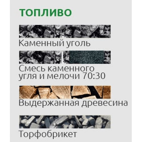 Периодичность загрузки топлива (длительность горения) зависит от его калорийности, влажности и длительности тления, в среднем 6 часов на дровах и 18 часов на угле.