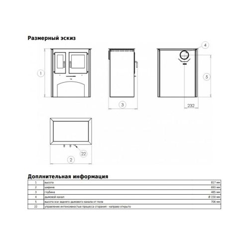 - Диаметр дымохода (мм) 150 мм