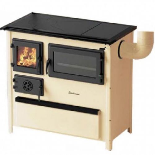 Эмалированное покрытие обеспечивает высокую стойкость к коррозии, дольше сохраняет свой первоначальный облик, блеск и глубину цвета. Цвет МБС Тренд - кремовый или белый, элементы (моудинги) чёрного цвета. Подключение к дымоходу осуществляется с помощью патрубка, расположенным слева или справа на боковой или верхней панеле. Одноконфорочная варочная поверхность с декоративной крышкой. Герметичные дверцы топки и духового шкафа изготовлены из чугуна и немецкой стеклокерамики SCHOTT ROBAX. Чугунная дверца с регулировкой подачи воздуха для горения способствует экономичному расходу топлива. Большая топочная камера футерована шамотом. Для хранения посуды или дров имеется выдвижной вместительный ящик. Печь укомплектована эмалированным протвенем, кочергой и перчаткой.