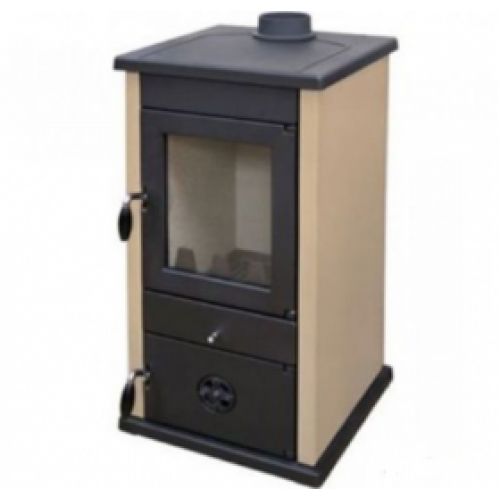 Дровяной камин предназначен для отопления загородных домов. Печь-камин изготовлена из чугуна и эмалированной стали. Эмалированное покрытие обеспечивает продолжительный срок службы печи и отвечает за эстетичный внешний вид. Для МБС Веста доступно три цвета эмалированного покрытия: красный, кремовый и бордовый. Топочная камера футерована плитами из вермикулита, позволяющими выравнивать перепады температуры и продлить срок службы прибора. Дверца топки укомплектована термостойкой стеклокерамикой. Замок и уплотнительный шнур у МБС Веста Сербия обеспечивают герметичное закрывание дверцы. Проём для загрузки дров Ш?В - 243?271 мм. Ящик для золы спрятан за герметичной чугунной дверцей. Дверца зольника снабжена устройством точной регулировкой подачи воздуха в топочную камеру. Колосниковая решетка подвижная для встряхивания золы. Для подключения к дымоходу предусмотрен патрубок, расположенный на чугунной поверхности печи.