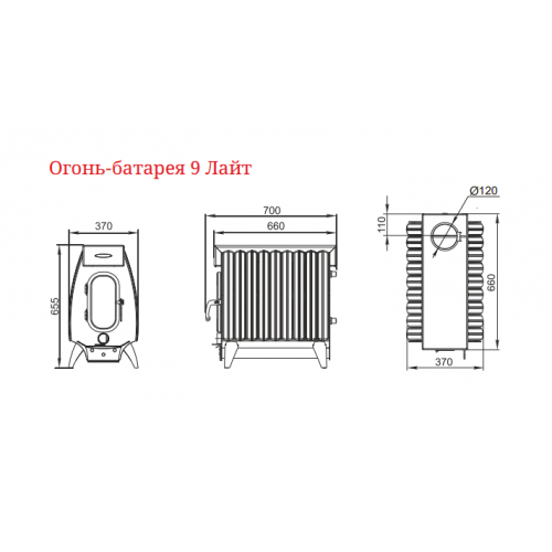 Отопительная печь Термофор Огонь-батарея 9 Лайт антрацит