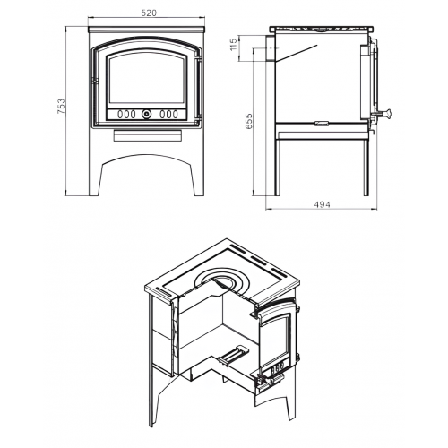 - Диаметр дымохода 115 мм