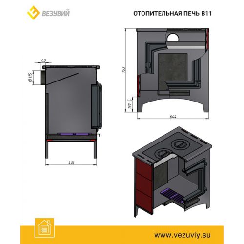 - Модель: ПЕЧЬ ОТОПИТЕЛЬНАЯ ВЕЗУВИЙ В11