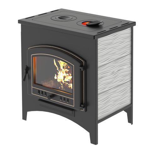 Отопительная печь «Везувий» В11 (224) предназначена для установки в различных хозяйственных и жилых помещениях. Печь изготовлена из специальной конструкционной стали. Верхняя чугунная плита может использоваться для приготовления пищи. Печь укомплектована чугунным колосником и чугунной герметичной дверцей Везувий 224 с жаропрочным стеклом. Печь облицована Керамическими вставками.