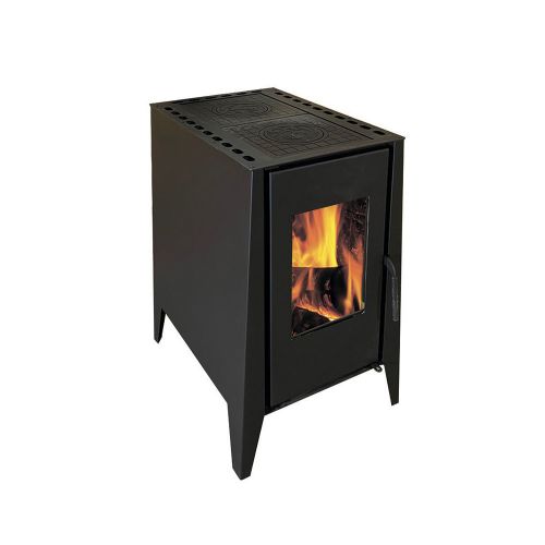 Укомплектована чугунными плитами для приготовления и разогрева пищи. Возможно установить один либо два теплообменника (артикул ТО05) для подключения к системе отопления дома.