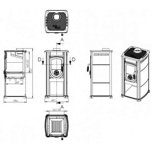 - Габаритные размеры печи (ШхВхГ), мм 396*850*375