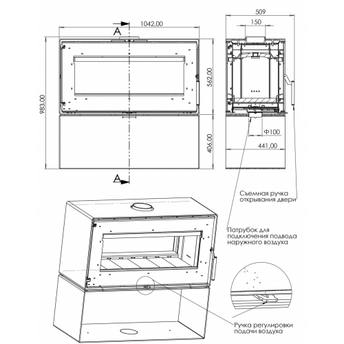 | Габаритные размеры печи (ШхВхГ), мм | 1042х968(без подставки 562)х441 |