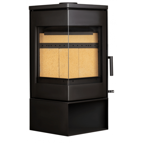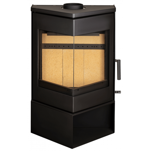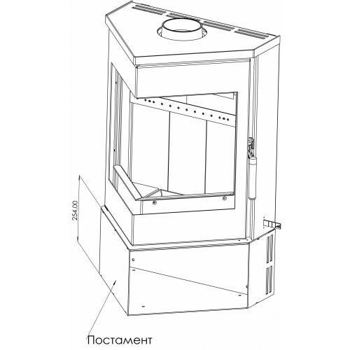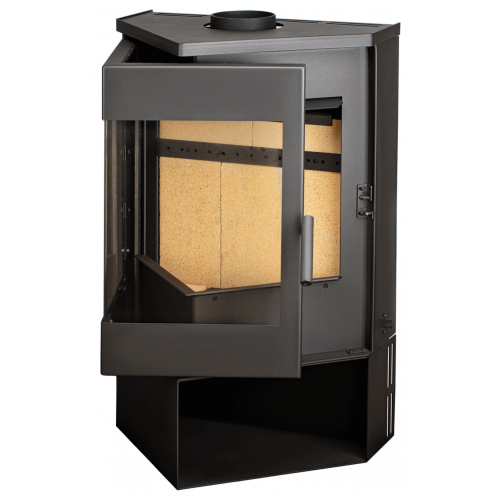 Обзор огня с двух сторон. Печь-камин ЛеМан оборудована большой остекленной угловой дверкой. По своему желанию вы можете изменить сторону открывания двери (в комплект входит две ручки). Постамент печи также является универсальным и может быть установлен на левую либо правую сторону.