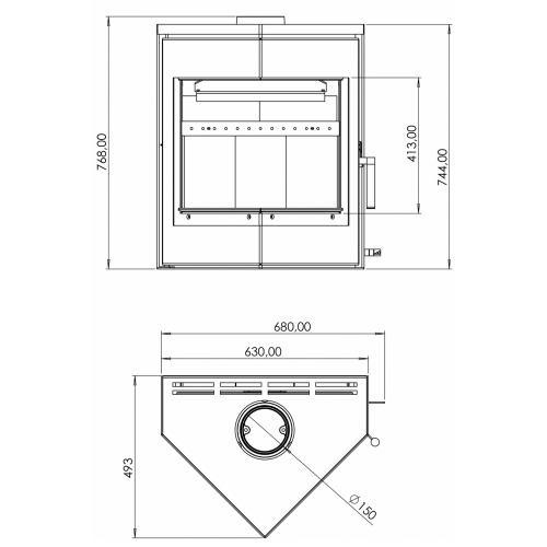 - Диаметр дымохода, мм 150
